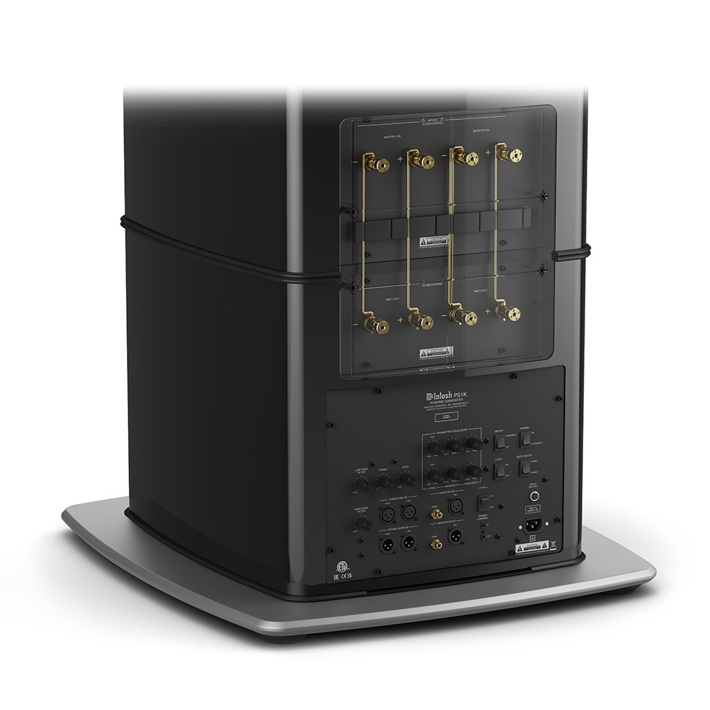 - 2x amplificatori ultra performanti in Classe D da 500 Watt dedicati a ciascun altoparlante, per una potenza complessiva di 1000 Watt, meticolosamente calibrati per riprodurre le basse frequenze con distorsione infinitesimale e con trasparenza, controllo, dinamica e impatto impeccabili, alloggiati in un apposito modulo disaccoppiato dagli altoparlanti e collocato in prossimità della base dei diffusori, dotato di ampio display VU-Meter dall'iconico design McIntosh;