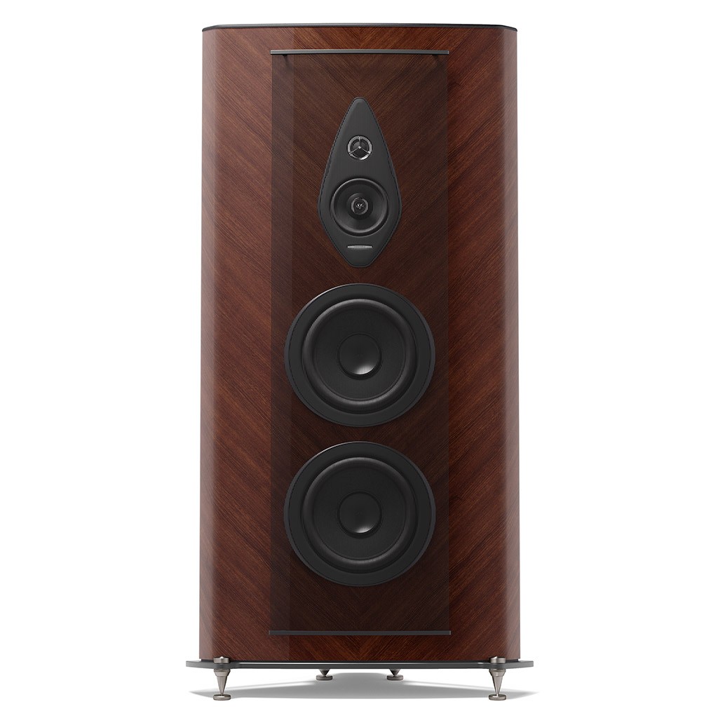 - sistema perfezionato di altoparlanti proprietari Sonus faber, disposti in camere acustiche separate e disaccoppiate: 1x tweeter a cupola morbida D.A.D. (Damped Apex Dome) da 28 mm con membrana in seta, rifasatore a tripode e magnete in neodimio, che assicura un'ampia dispersione e un controllo impeccabile delle alte frequenze anche ai volumi più elevati;