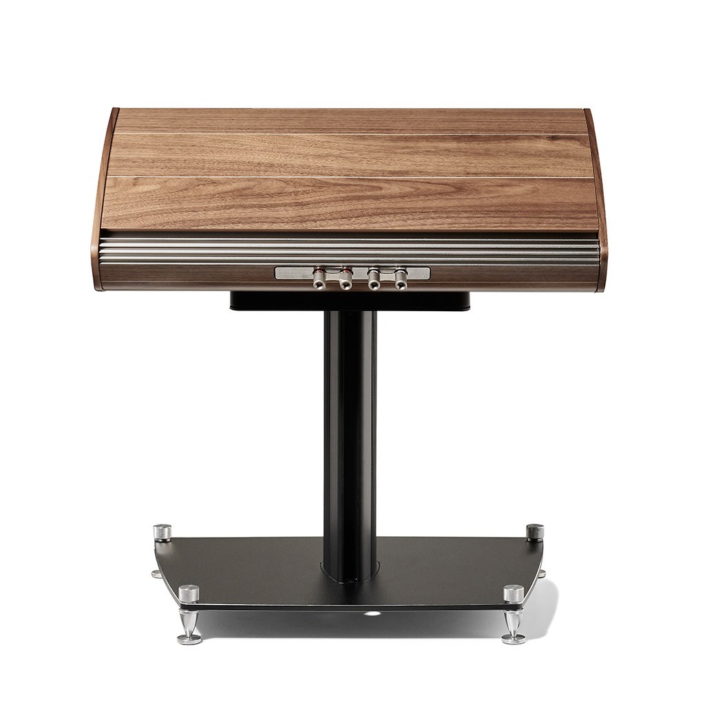 - stand dedicato opzionale (acquistabile separatamente) con apposita guida per nascondere i cavi lungo la colonna, realizzato in alluminio scavato dal pieno e abbinato a punte coniche in acciaio regolabili;