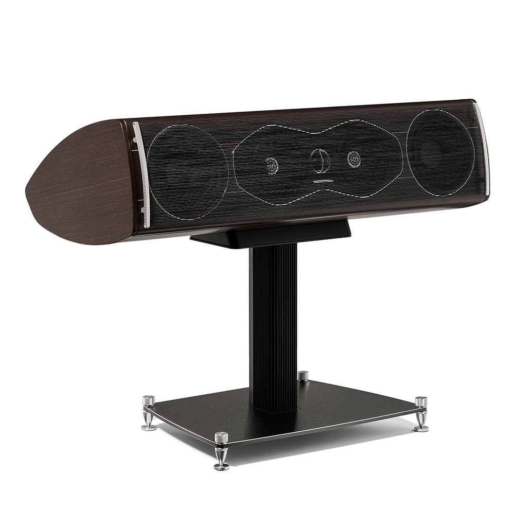 - stand dedicato opzionale (acquistabile separatamente) con apposita guida per nascondere i cavi lungo la colonna, realizzato in alluminio scavato dal pieno e abbinato a punte coniche in acciaio regolabili;