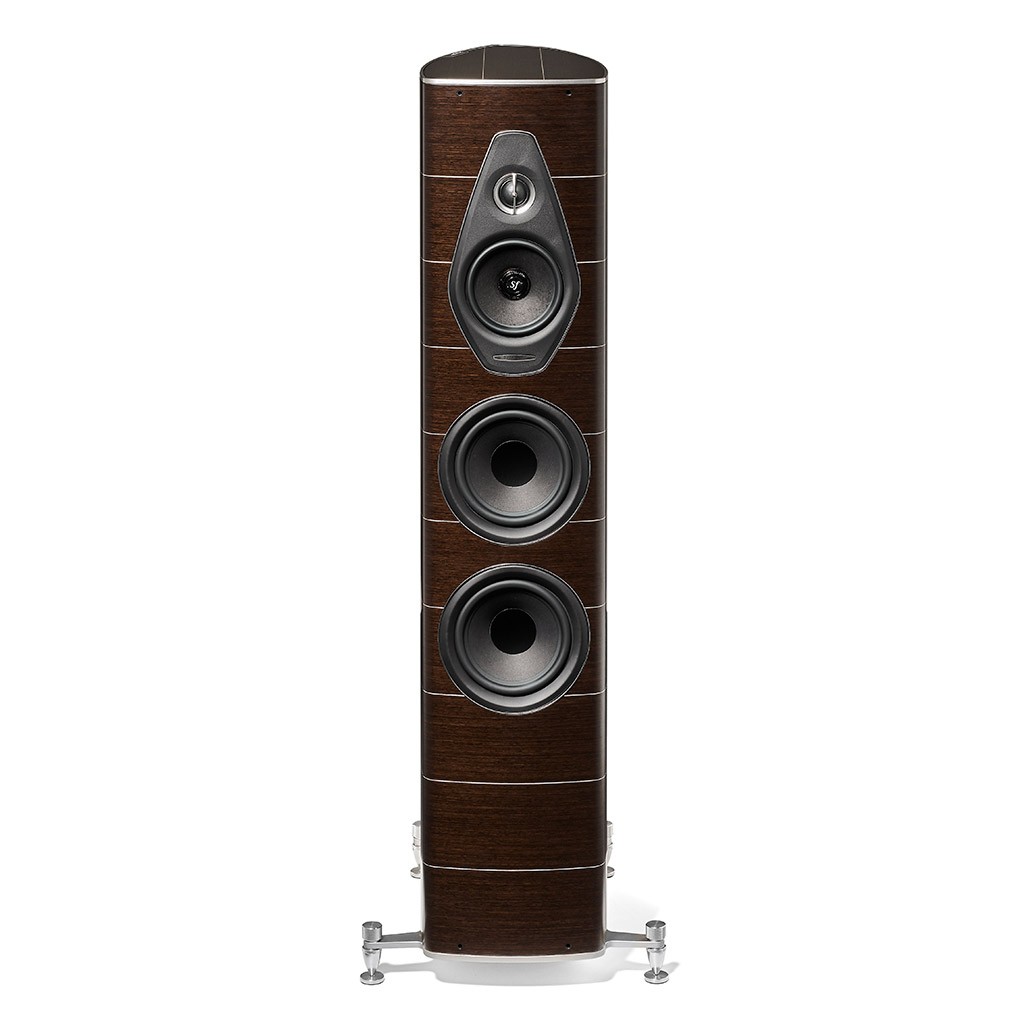 - altoparlanti proprietari Sonus faber: tweeter H28 XTR3 a cupola morbida in seta da 28 mm con archetto e anello DAD (Damped Apex Dome) in unico pezzo di alluminio pressofuso e motore magnetico in neodimio / midrange M15 XTR2-04 da 150 mm con membrana in polpa di cellulosa e fibre naturali (kapok e kenaf) asciugata ad aria, bobina mobile CCAW (Copper Clad Aluminum Winding), cestello in alluminio pressofuso e ogiva in alluminio con anello in rame / 2x woofer W18XTR2-12 da 180 mm con caratteristiche analoghe a quelle del midrange ma dotati di Dust-Cap in stoffa imbevuta, bobina più lunga e cono a sandwich composto da due strati in polpa di cellulosa accoppiati tramite uno strato di schiuma sintattica;