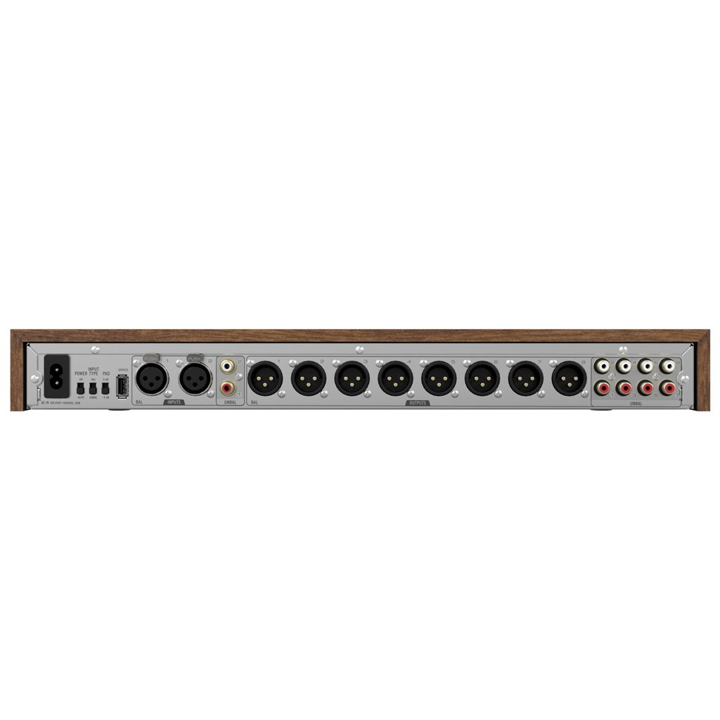 - crossover DSP attivo esterno, posizionabile su un ripiano o montabile a rack, con regolazione automatica della fase, del ritardo temporale, dell'equalizzazione e del guadagno di ciascun componente acustico, dotato di controlli gain dedicati per calibrare separatamente i livelli delle alte e delle basse frequenze, consentendo un'impostazione personalizzata capace di adattarsi al proprio ambiente e di soddisfare le preferenze individuali;
