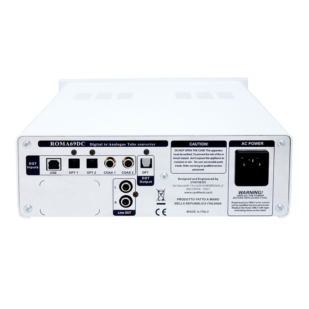 - riproduzione formati digitali DSD fino a DSD128 5,6 MHz (USB), PCM fino a 32 bit / 384 kHz (USB) e 24 bit / 192 kHz (coassiale e ottico);