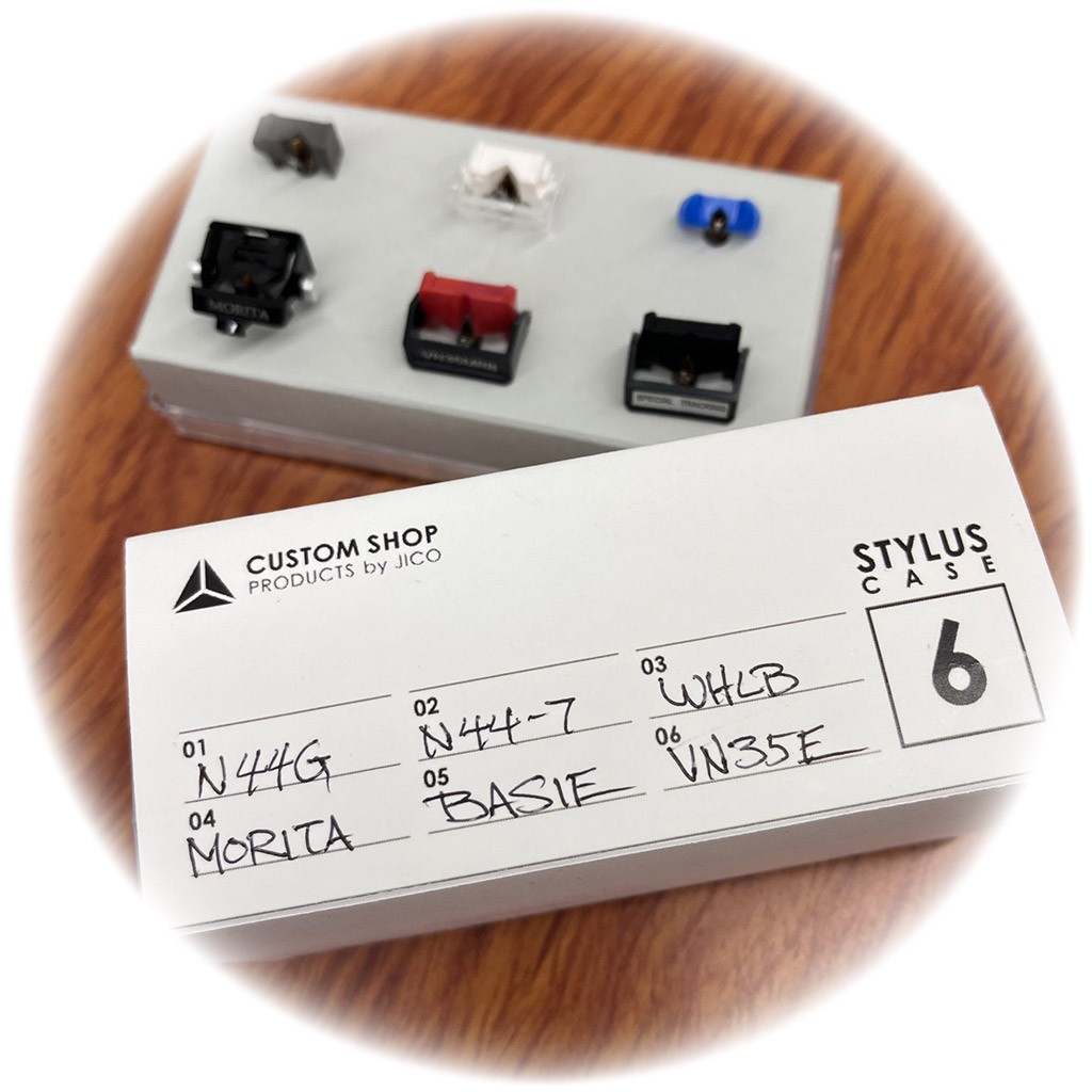 Custodia con cover in acrilico trasparente per la conservazione di 6x stili per fonorivelatori, da inserire in appositi alloggiamenti compatibili con modelli di stilo dotati di supporto metallico in prossimità del cantilever;
